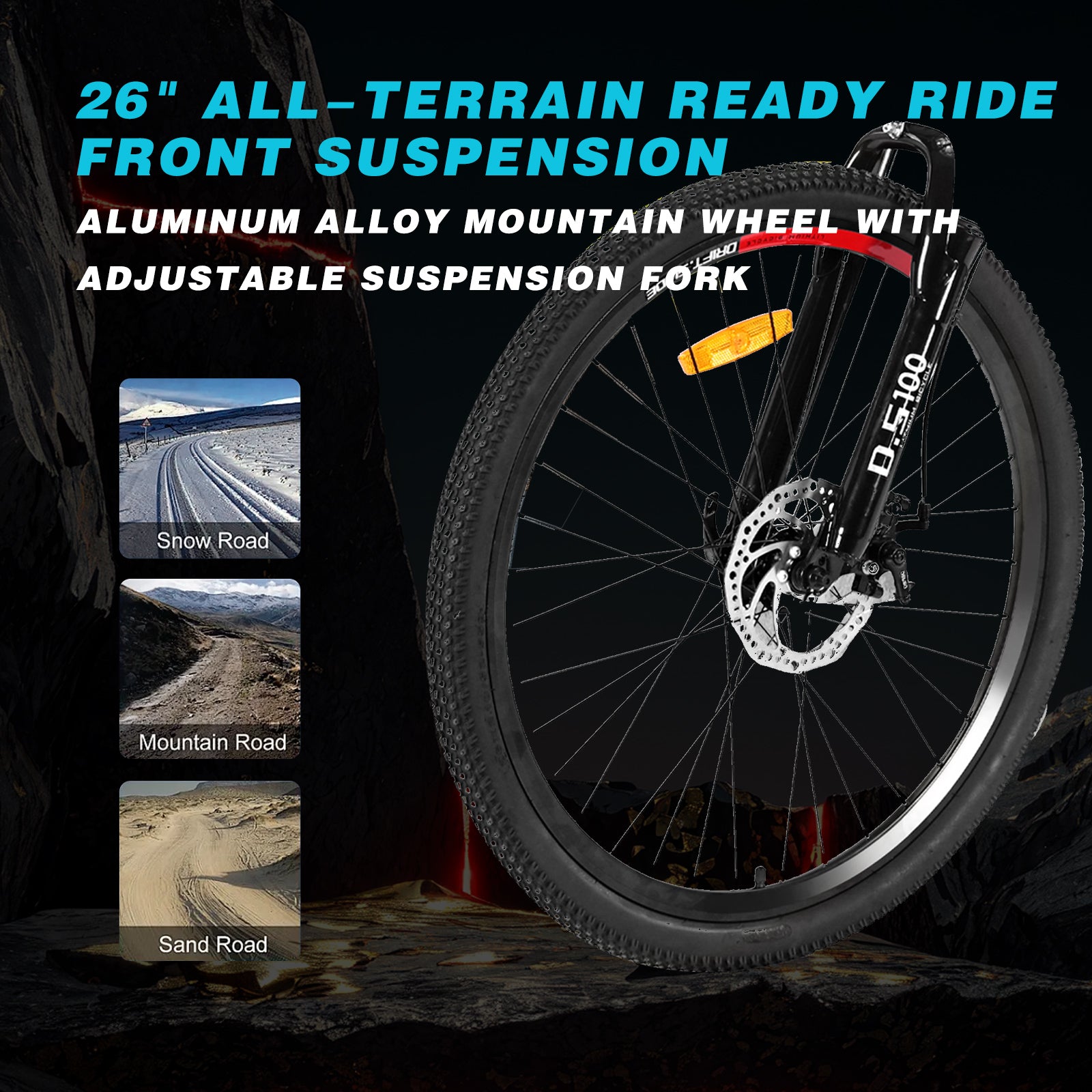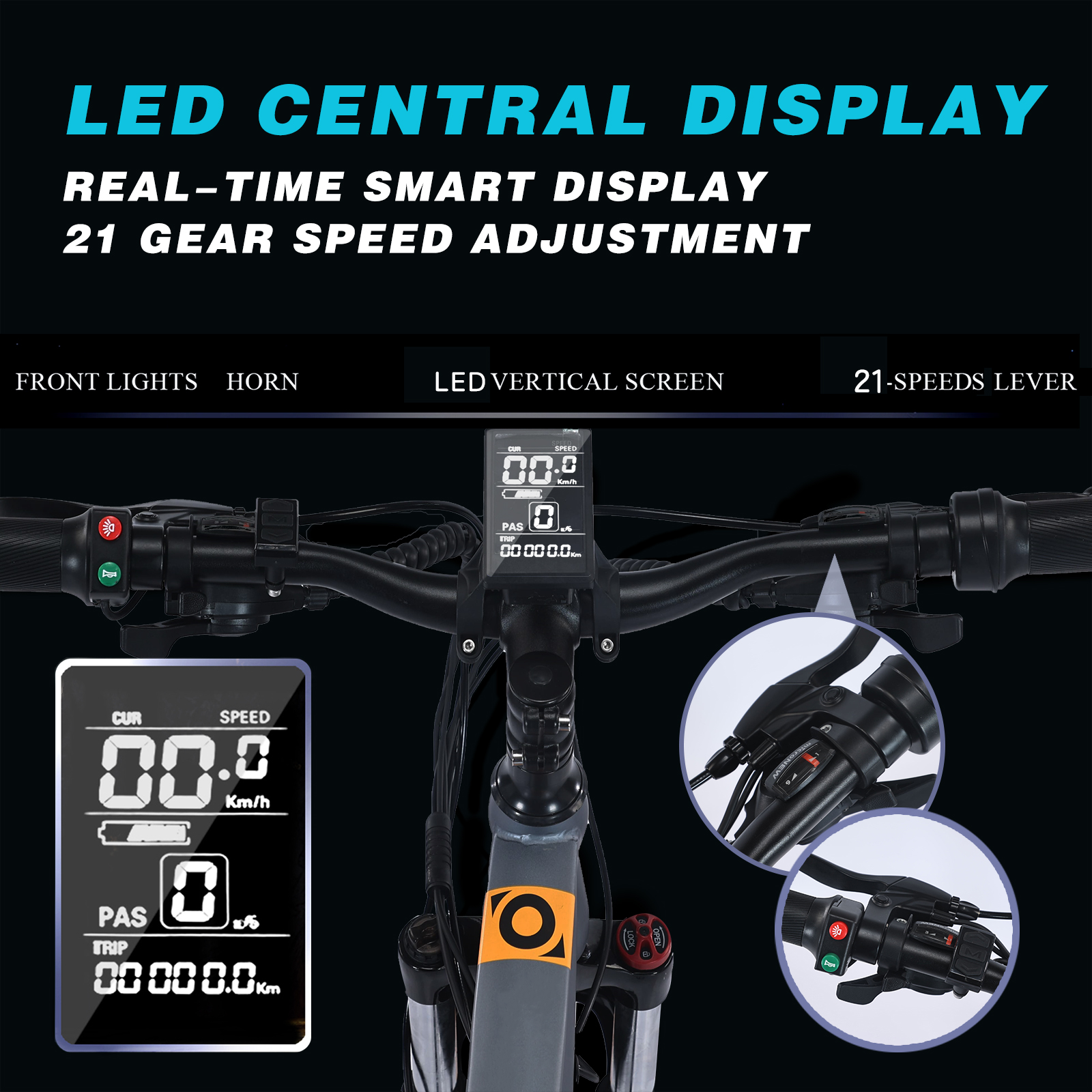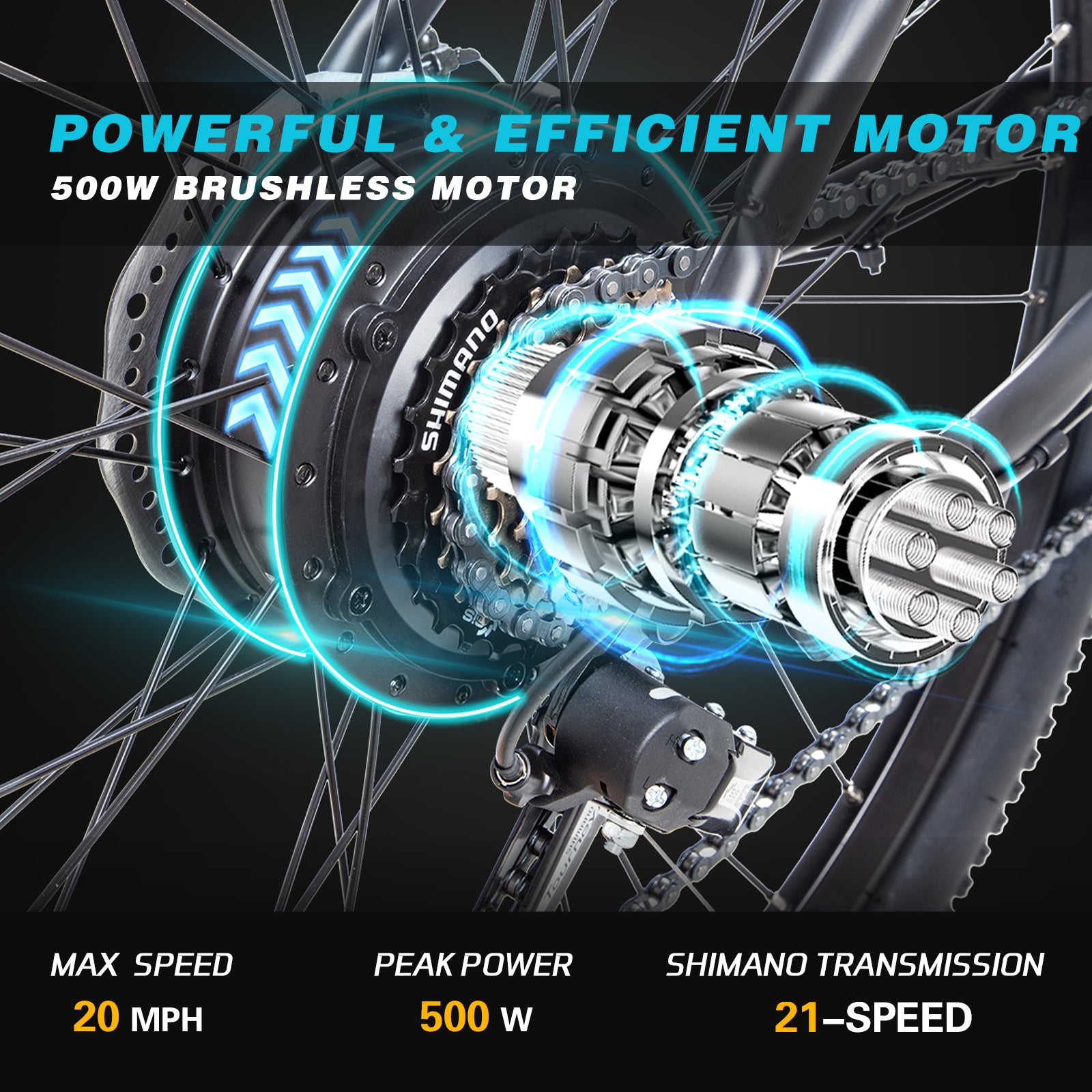 DRIFT.SLIDE Electric Bike for Adults with 500W Peak Motor,Top Speed 20 MPH 21 Speed Commuting Electric Mountain Bike with 36V / 48V Removable Battery Up to 43 Miles, Front Suspension