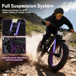 - Comfortable Riding Experience: Equipped with a dual front and rear suspension system that effectively absorbs road bumps, combined with an extended, thickened comfort seat and ergonomically designed upward-curving handlebars, this design promotes a more relaxed riding posture and reduces fatigue during long rides.