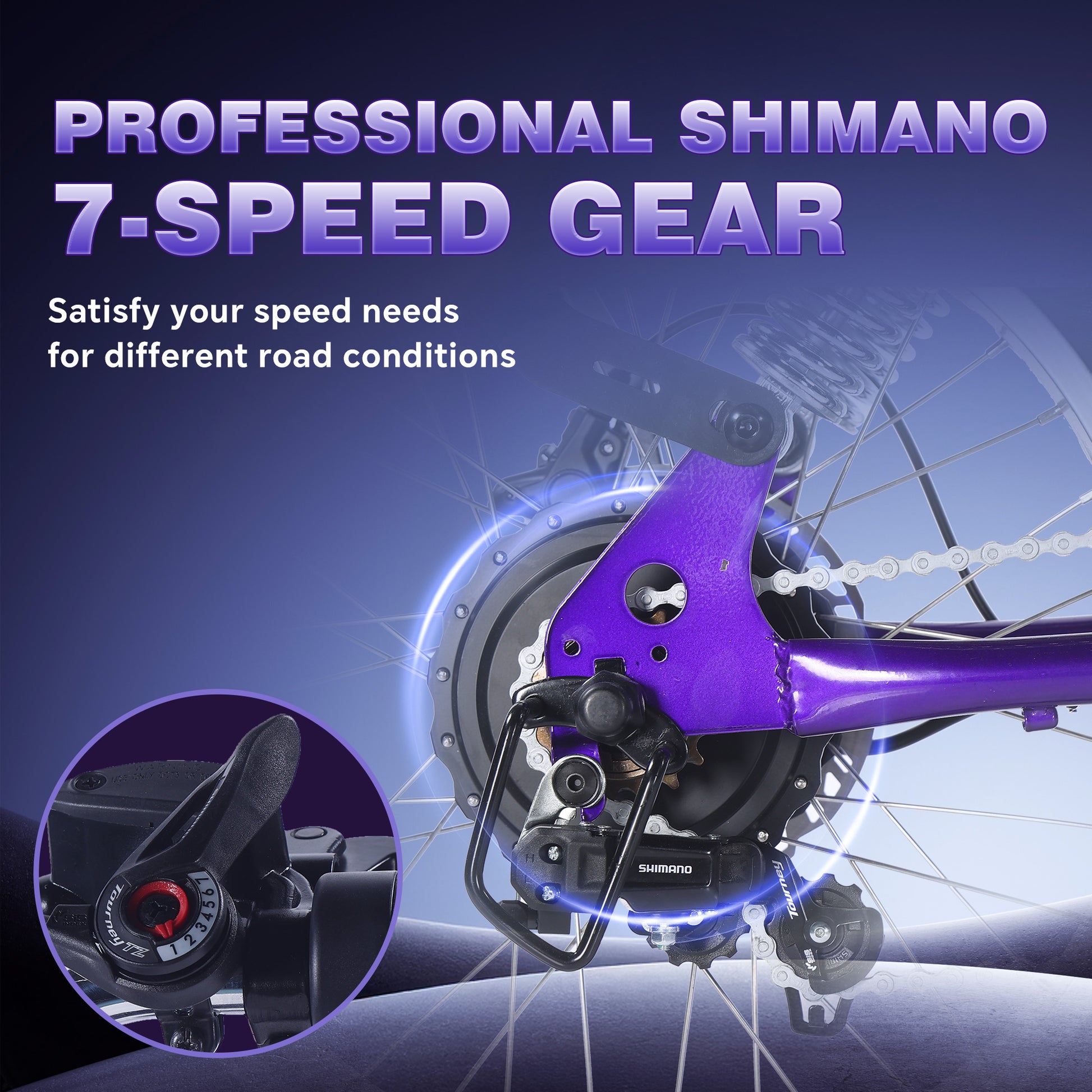 Multi-Surface Fat Tires – 20" x 4" wide tires enhance traction and stability, providing safe rides on flat roads, gravel, or light sand.